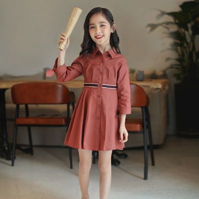 ママサイズ有 トレンチ 素材 ワンピース 110 150cm ママサイズ ウエストマーク Aライン シャツ ワンピ 人気 春 秋 2シーズン 着回し 19s S 韓国 子供服 女の子 P045 A Dear Child
